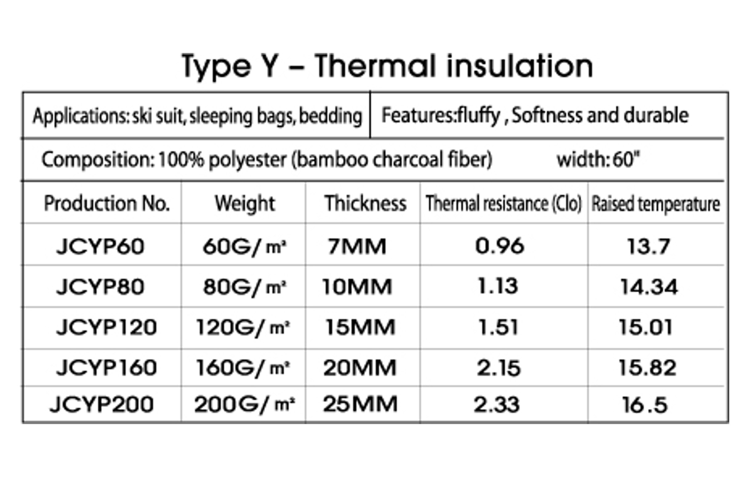 - BamCoalTex 竹炭中空短纖棉可增加保溫功能達10%~15%。