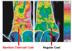 - BamCoalTex 的特性主要是透過附著於纖維上無數炭顆粒的中空間隙來保存身體散發出來的熱能,再回饋釋放給自身,如此便達到提升保暖效果。