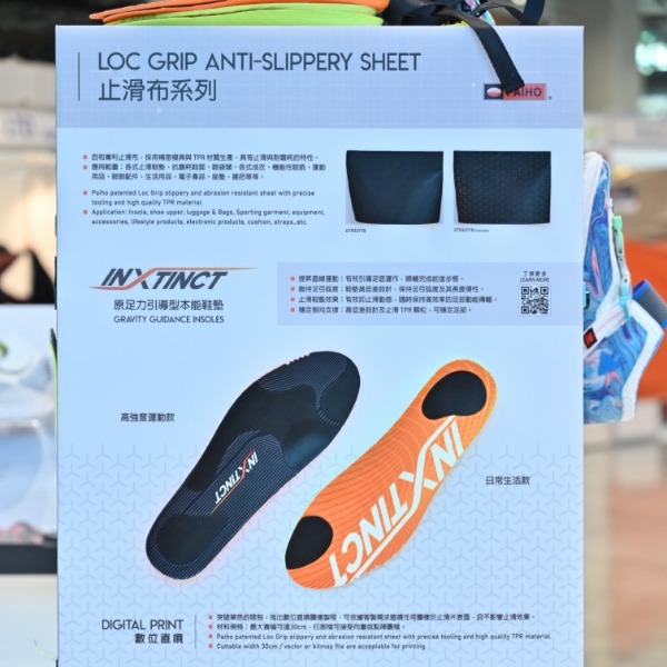 應用範圍:各式止滑鞋墊、抗磨耗鞋面、鞄袋類、各式成衣、機能性服飾、運動用品、服飾配件、生活用品、電子產品、座墊、握把等等。
