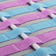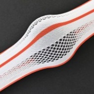 創新一體成型雙層針織帶,從 2D 平面轉變為 3D 立體織物結構。可呈現各種網孔組織、簡潔的收邊於同一針織帶。