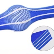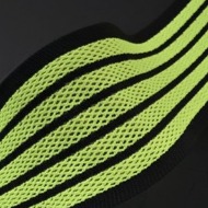 可結合大小不同的網洞組織於同一帶身,具有緯向延伸性,且多層次的結構具有如同百葉窗般的透氣性與散熱功能。