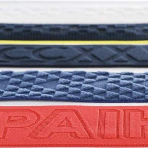 多層次的立體緹花圖樣鬆緊帶,各種帶身皺褶效果可依據設計客製化。