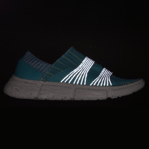 除此之外也可加入各種不同的紗線,呈現出的效果與手感也絕然不同,例如加入高係數的反光紗線,增加夜間的安全性。