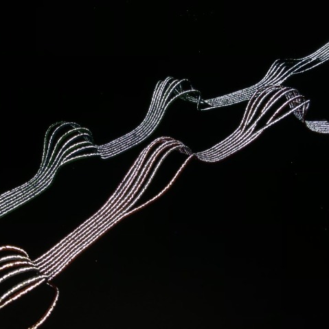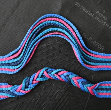 2020新開發的特殊一對多織帶,與一般織帶不同的是,由一到多條織帶的結構,如同斜張橋的鋼纜似的,由一點向外擴散出去,支撐著整個橋梁。