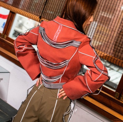 在服飾方面除了能夠當作裝飾外,也可用在肩膀處或膝蓋等彎曲處,在動作時能夠貼合身形,除了符合舒適性的條件外,更能夠增加時尚感。