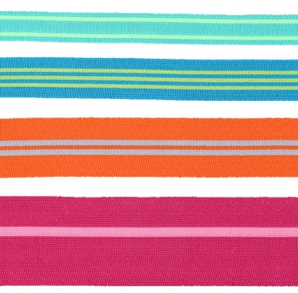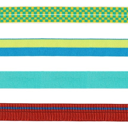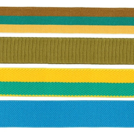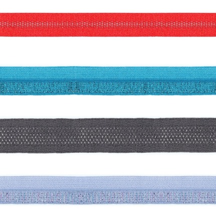 四面彈性的針織鬆緊帶,帶身兩側可做毛圈流蘇效果,可結合表面矽膠塗佈效果。