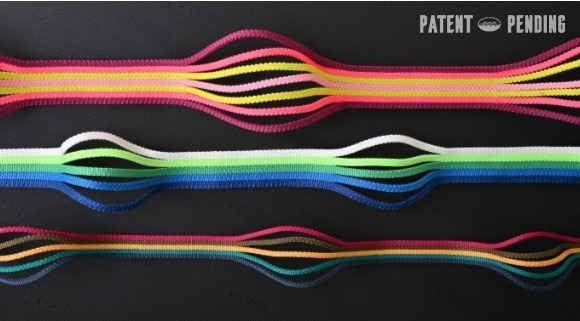 百和原創,上下兩層,上層為不延伸織帶、下層為高強度鬆緊帶,應用於鞋面具有腳部鎖定的效果。鞋帶孔間距、高度、寬度皆可調整,可作大小孔。可搭配其他拉繩的多功能織帶。可應用於內外腰鞋面、鞋舌、後跟部為、背包帶等等。